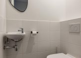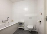 De royale en luxe badkamer is geheel betegeld, en voorzien van ligbad, separate inloopdouche, wandcloset, wastafelmeubel met 2 kranen en handdoekradiator.
