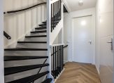 Via de vaste trap in de hal is de overloop van de eerste verdieping te bereiken, vanwaar er toegang is tot aan weerszijden van de woning 2 royale (woningbrede) slaapkamers en tussengelegen extra grote badkamer.