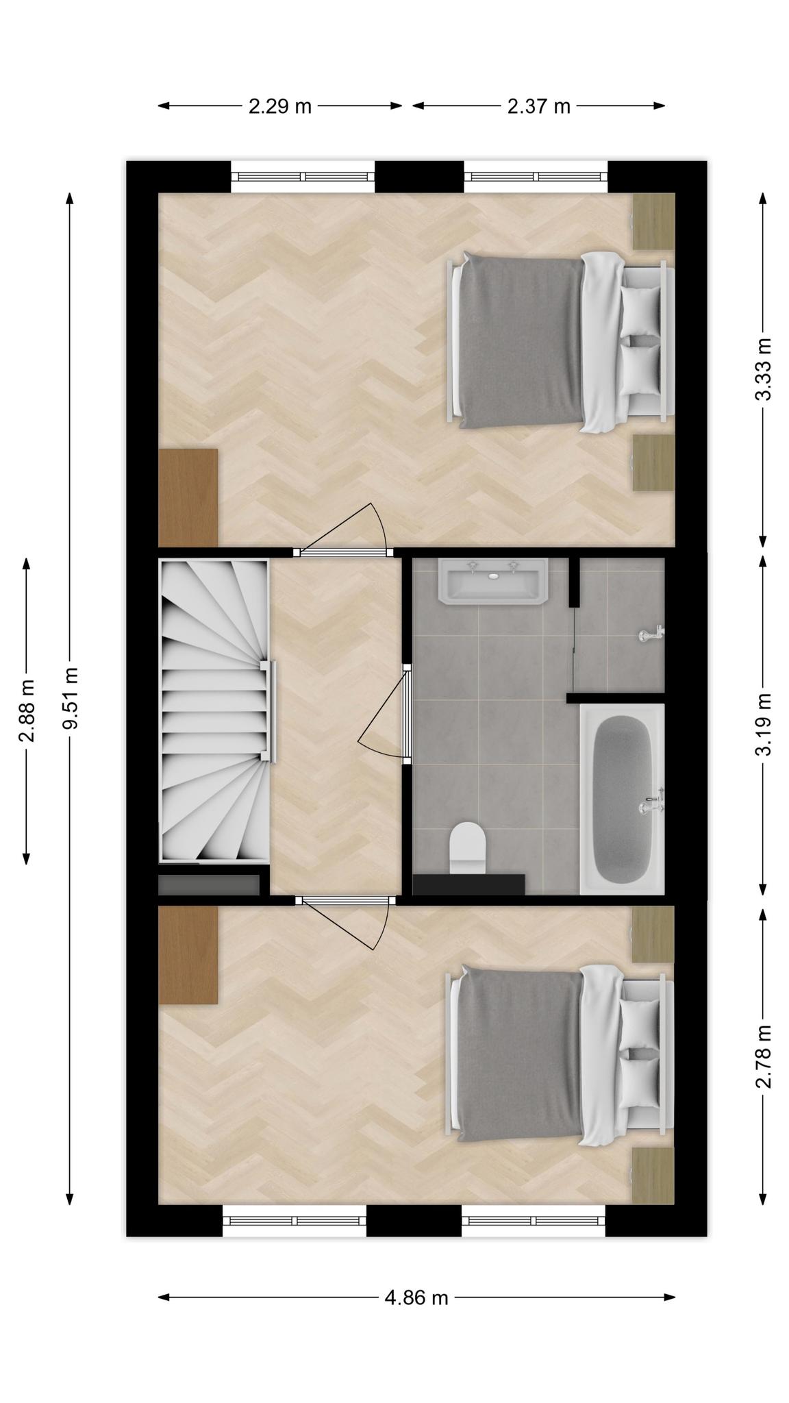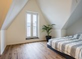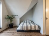 Via de vaste trap heeft u toegang tot de zolderverdieping. Dankzij de tuit-gevel is deze verdieping ook ruim en ook direct bij de bouw voorzien van 2 praktische slaapkamers. Aan de voorzijde is een heerlijk grote slaapkamer met frans balkon (naar binnen openslaande deuren) ontstaan, en geeft ‘de tuit’ een extra dimensie aan de kamer. Een 2e kamer (geen daglicht) dient vooralsnog als berging. In een afgesloten techniekruimte vindt u de aansluiting voor wasmachine en/of wasdroger en de unit voor de ventilatie (WTW-unit).