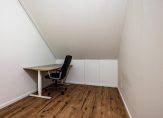 De hoofdslaapkamer is aan de achterzijde, terwijl aan de voorzijde een bijna even grote slaapkamer als heerlijk lichte werkkamer in gebruik is.