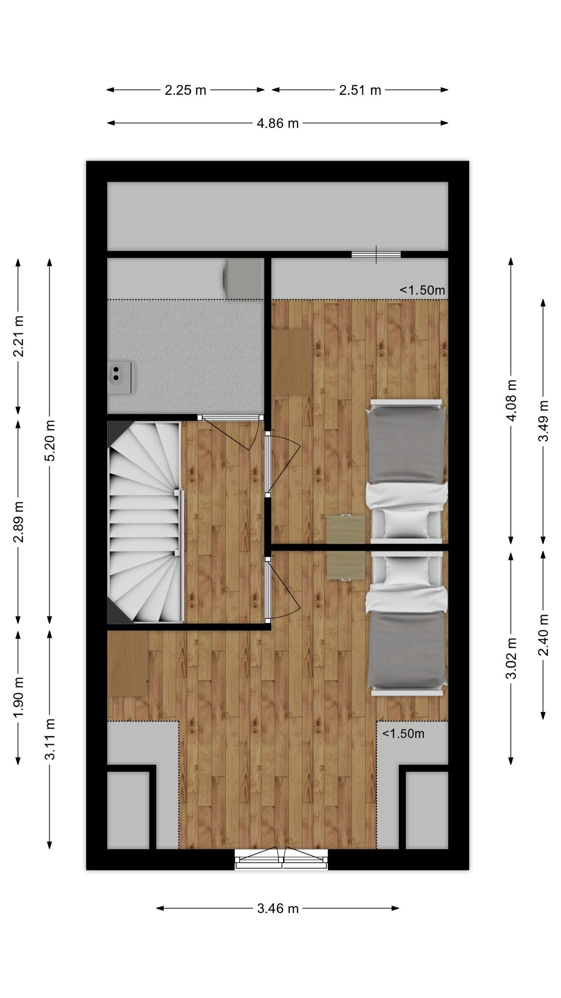 Slaapkamer 2 (achter) : ca. 3.33 m x 4.86 m
