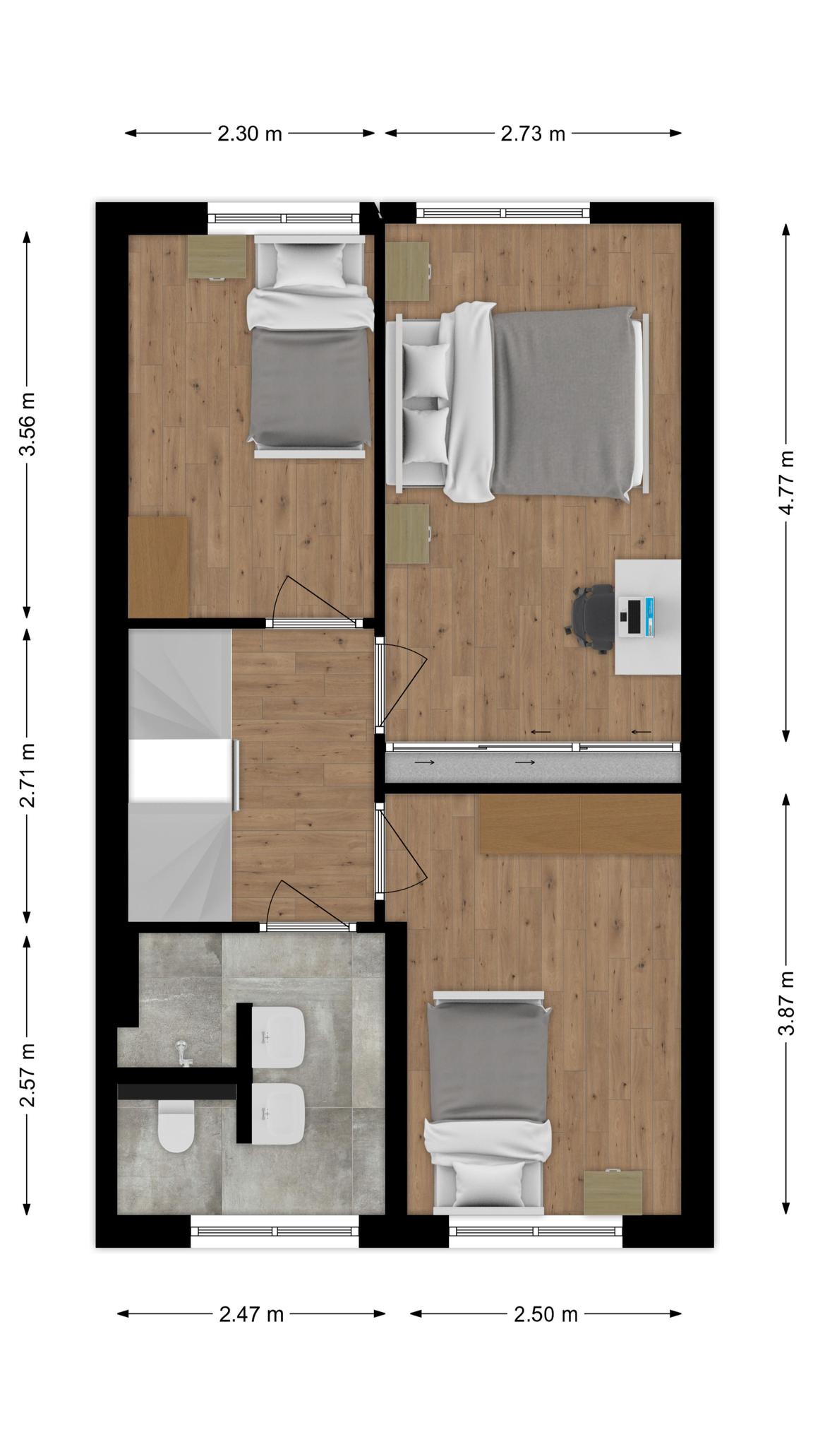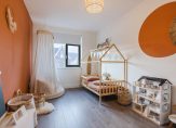 Op deze verdieping is in de slaapkamers de vloerverwarming en -koeling apart van elkaar te bedienen, en op de vloer ligt laminaat.