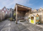 De achtertuin is gelegen op het zuiden, waardoor er nagenoeg de gehele dag volop zon is. Een gezellige en sfeervolle overkapping biedt u gelegenheid om tot in de late uurtjes buiten te zijn. Achterin de tuin staat een (vergrote) onderhoudsvrije (keraliet) berging voorzien van elektra. Achter de tuin, die ook achterom te bereiken is, bevindt zich extra parkeerruimte.
