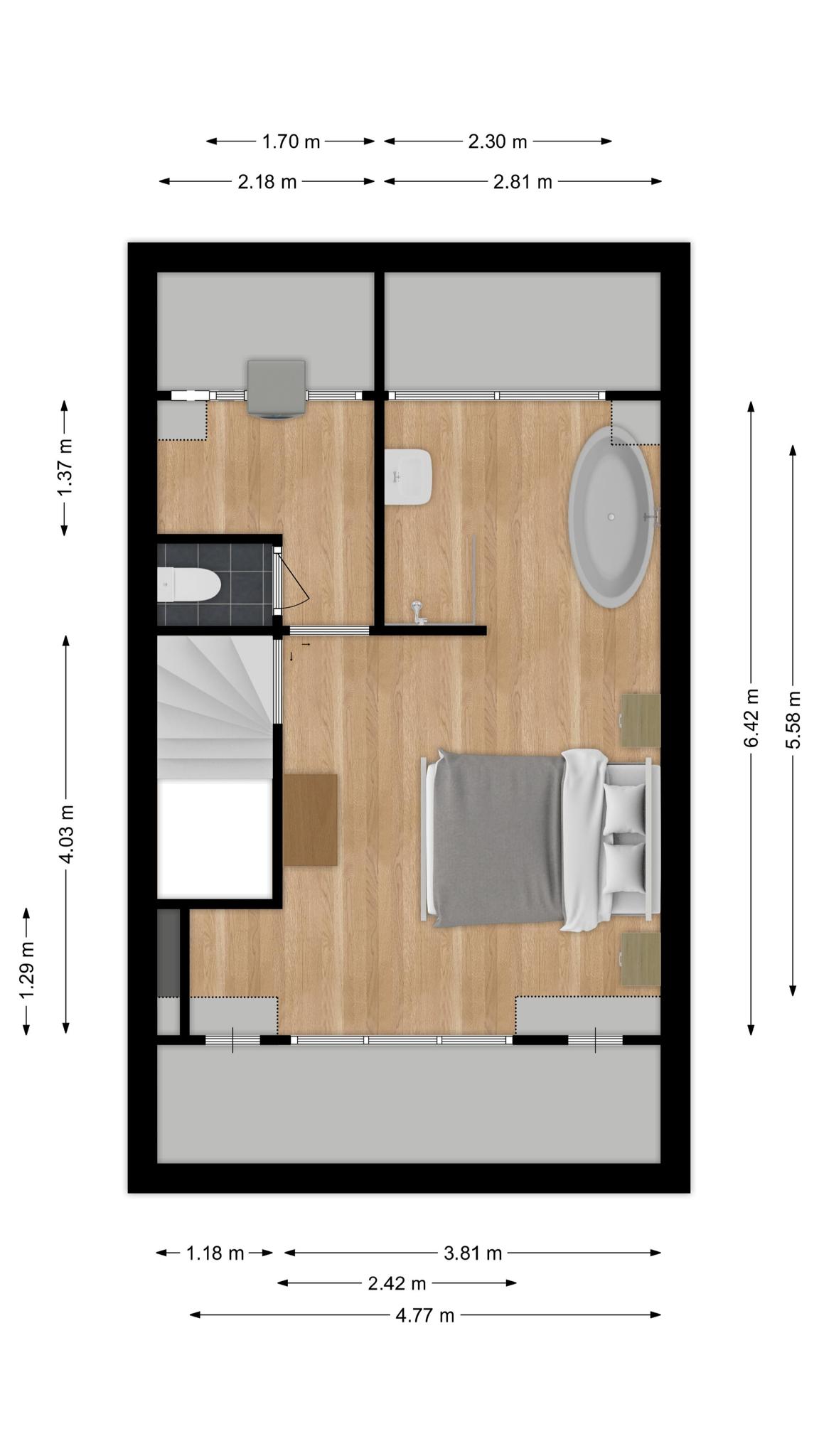 Slaapkamer 4 (zolder) : 4.77/3.81 m x 4.03 m