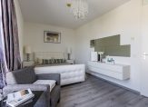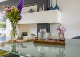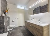 De begane grond is afgewerkt met een fraaie licht marmeren vloertegels, in combinatie met comfortabele vloerverwarming of vloerkoeling.