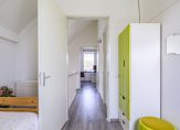 Overloop, zowel aan de voor- als aan de achterzijde is een grote (3e en 4e) slaapkamer, aan de voorzijde is een 5e (iets kleinere) slaapkamer en de ruimte tussen de beide grote slaapkamers kan dienst doen als een werk-/of hobbykamer.