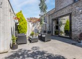 Entree, hal, meterkast (uitgebreid, 10 groepen en 2 aardlekschakelaars), betegelde toiletruimte met wandcloset en fontein, zeer royale tuingerichte living.