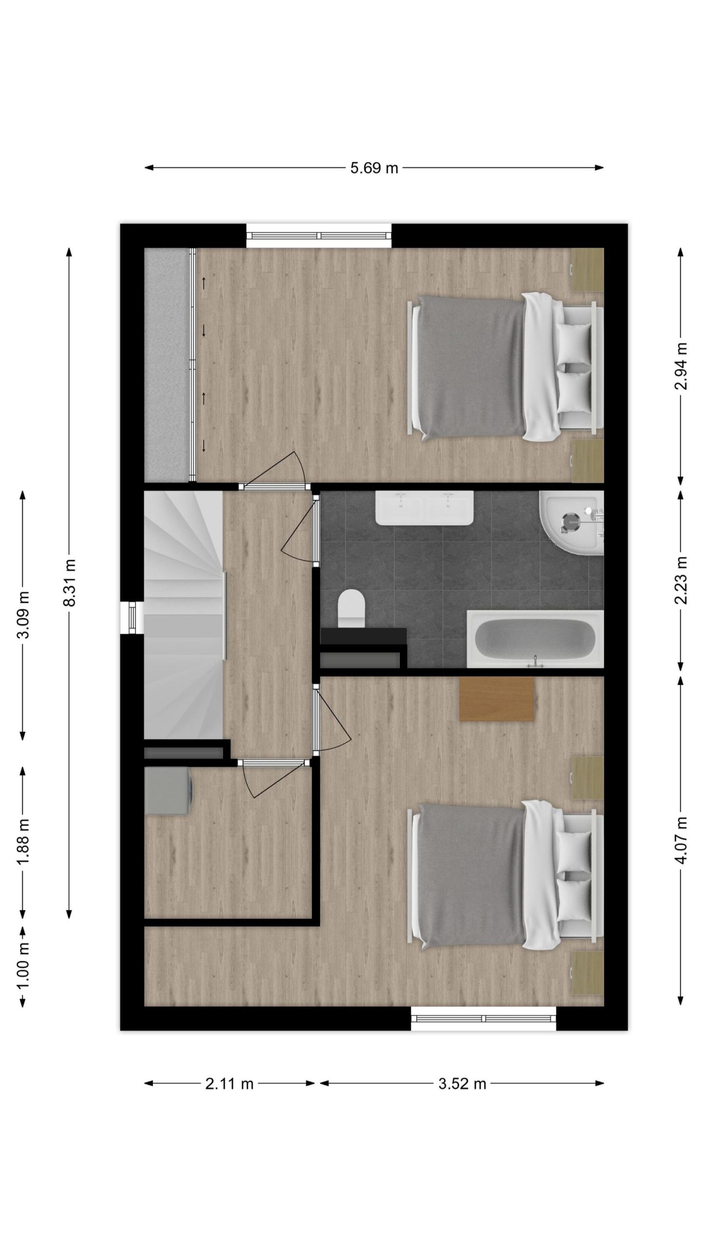Slaapkamer 1 (a) : ca. 5.69 x 2.94 m