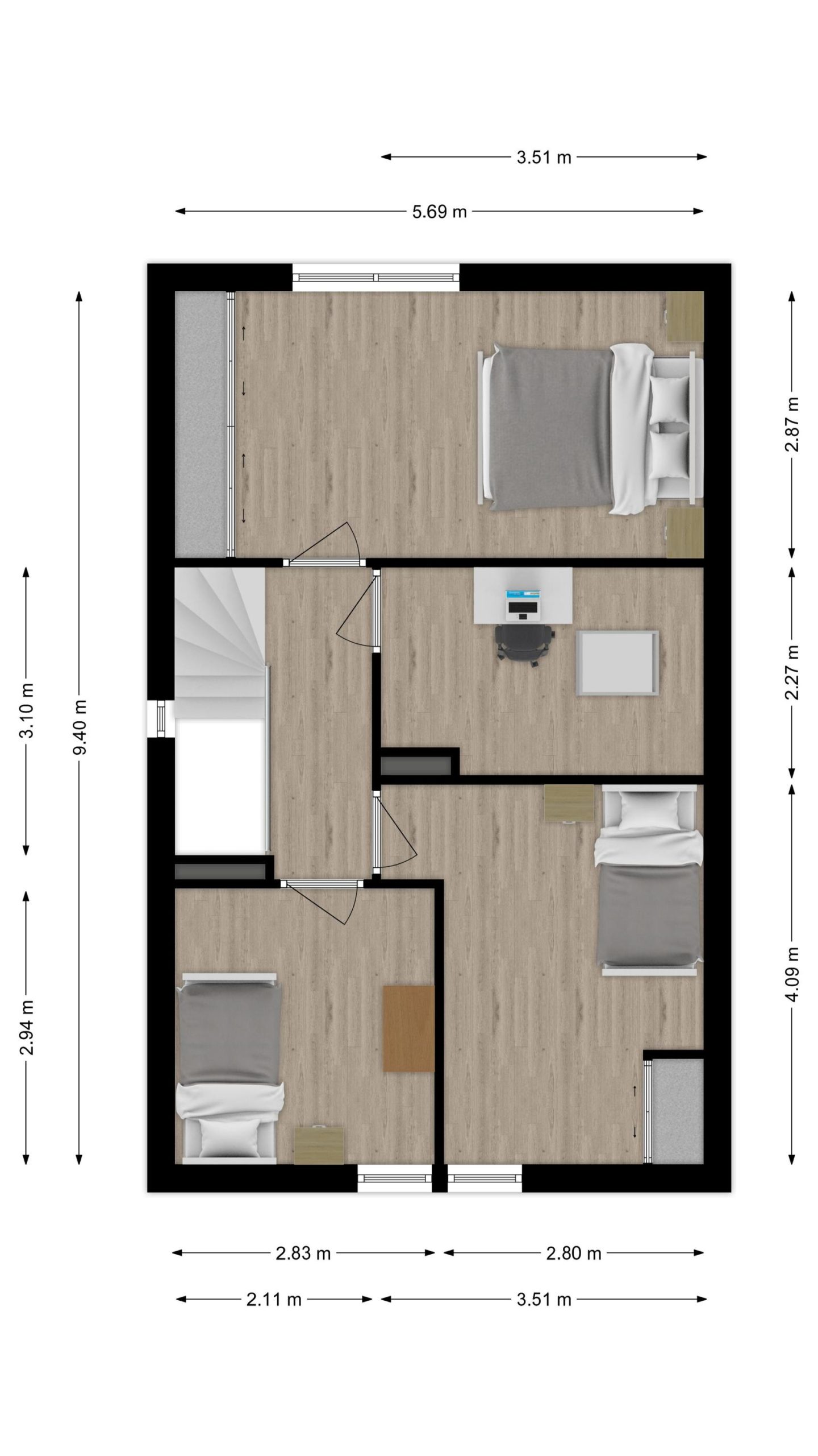 Slaapkamer 3 (a) : ca. 5.69 x 2.87 m