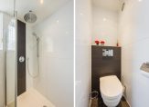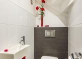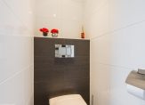 In de hal van de opgang naar de 1e verdieping bevindt zich ook de moderne toiletruimte, met wandcloset en fontein.