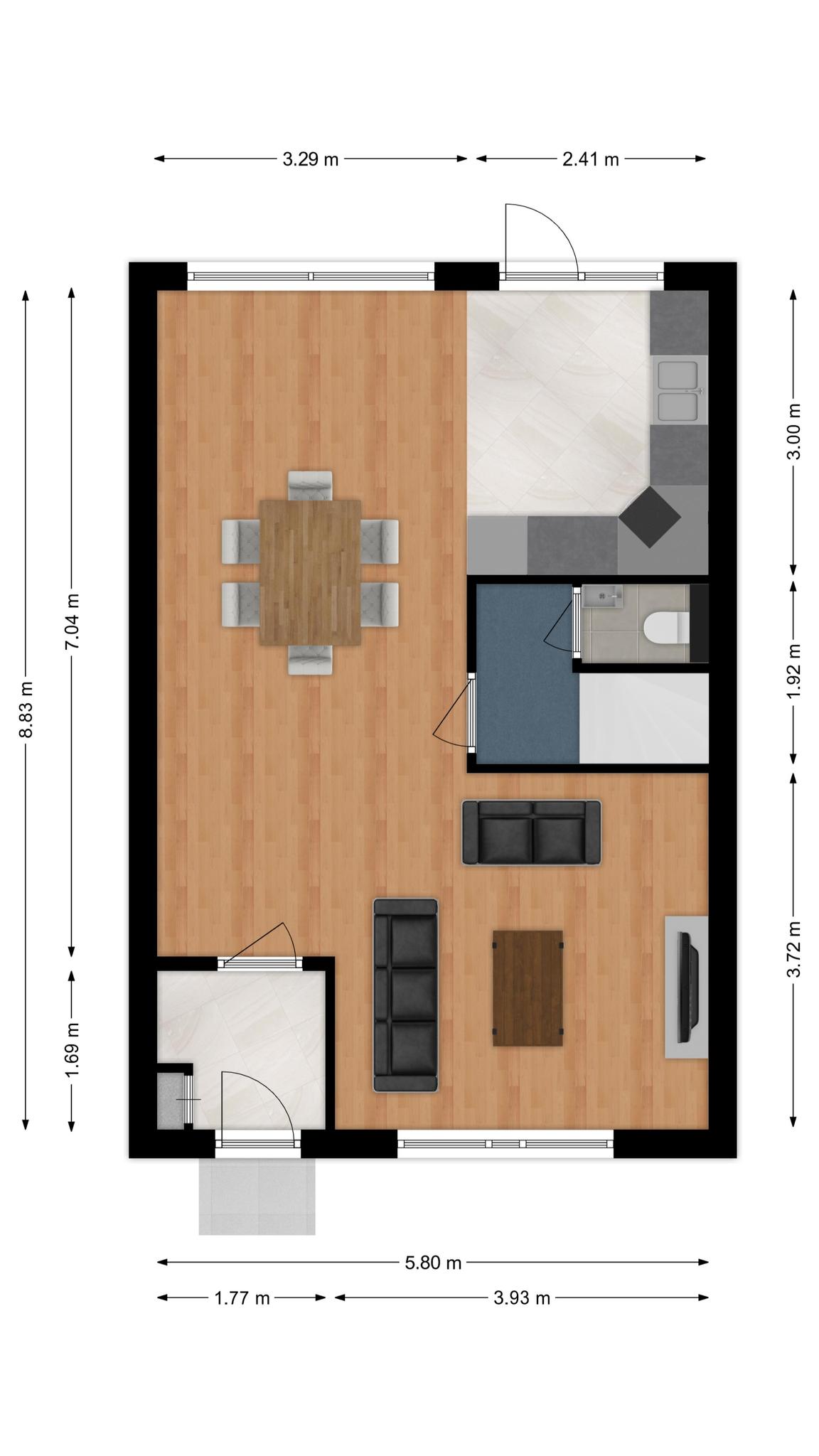 * Complete afwerking van keuken, toilet en badkamer;