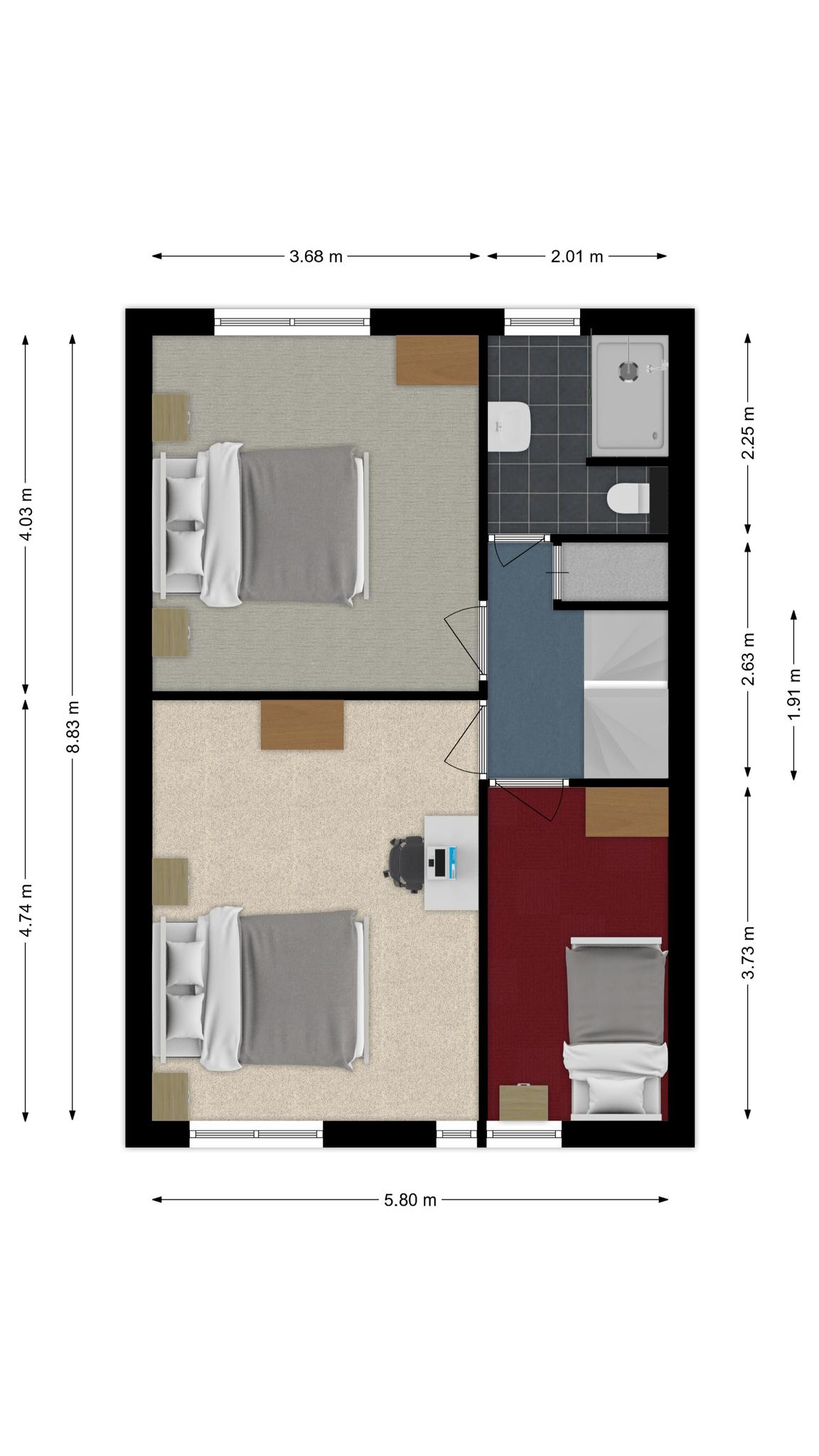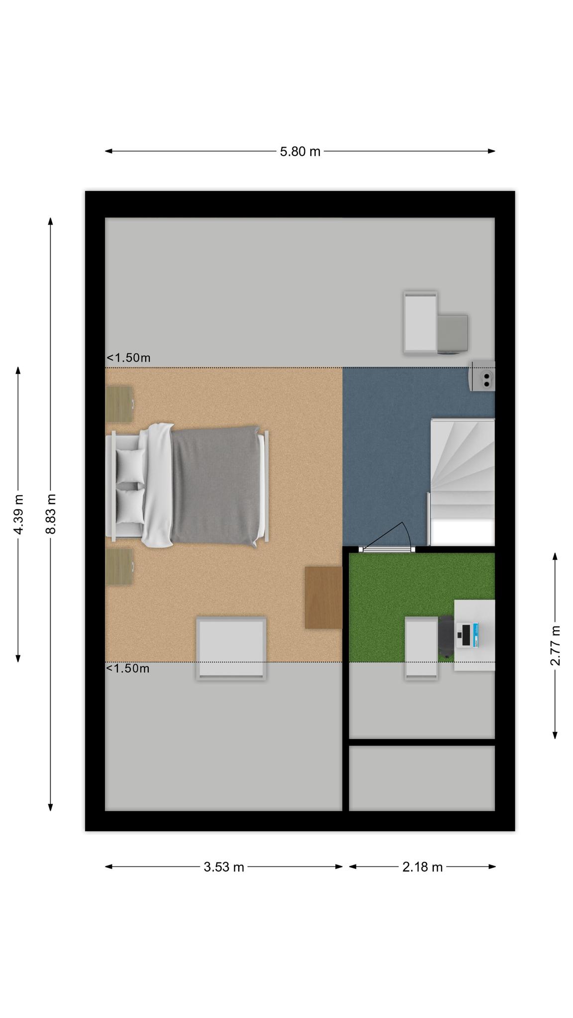 (werk) kamer : ca. 2.77 m x 2.18 m (vloeroppervlakte)
