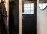 Entree, hal/portaal met vernieuwde meterkast (6 groepen, kookgroep, dubbele aardlekschakelaar en glasvezelaansluiting).