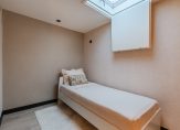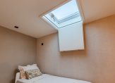 Aangrenzend ligt een slaapkamer/werkkamer op de begane grond, voorzien van een lichtkoepel en ventilatiemogelijkheid.