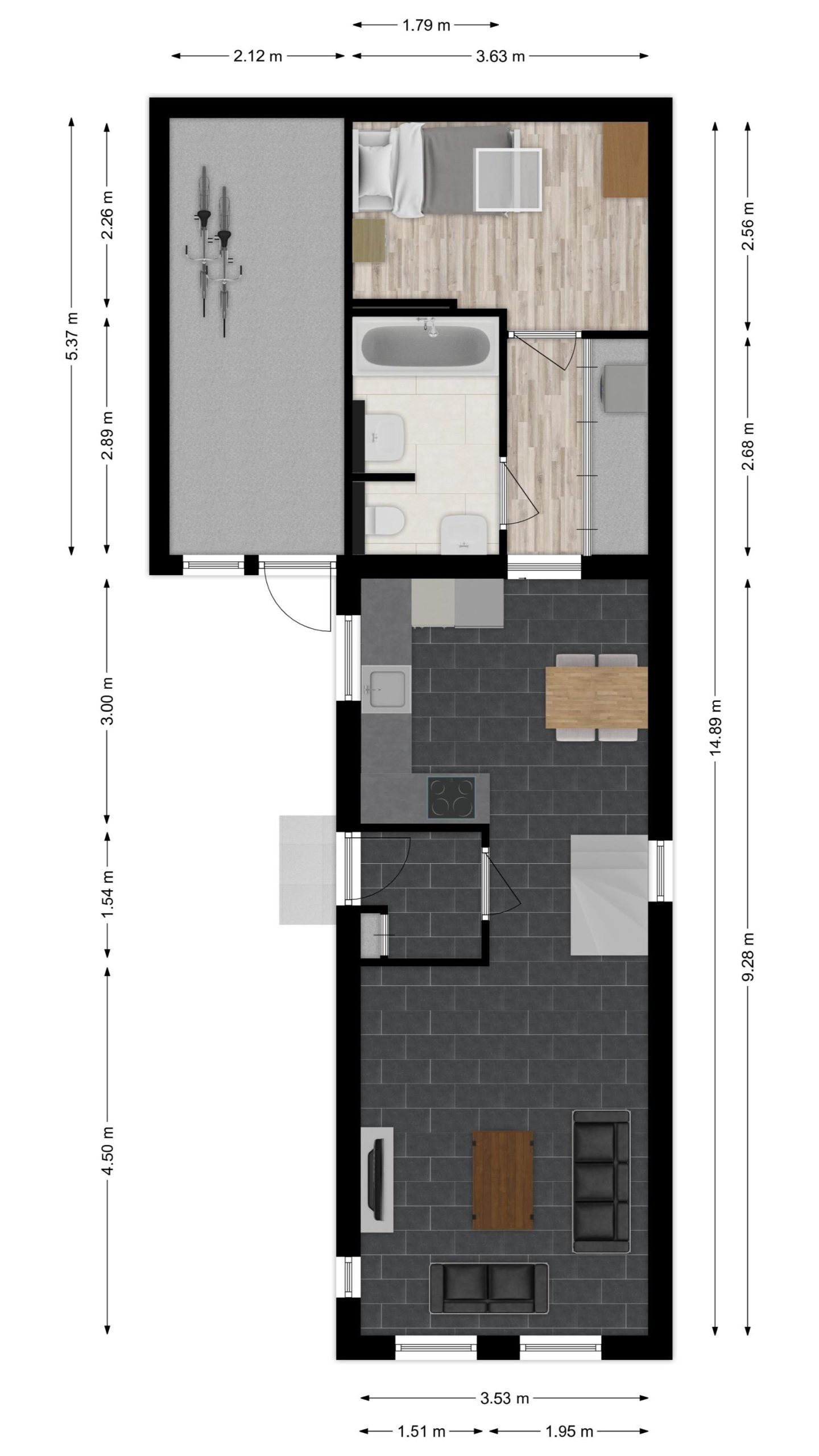 – Badkamer : ca. 2.89 m x 1.51 m