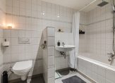 Via een tussenhal bereikt u de geheel betegelde badkamer met dubbele wastafel, ligbad/douchecombinatie, wandcloset en handdoekradiator. Tevens bevinden zich hier de opstelplaats van de cv-ketel en een vaste kast.