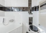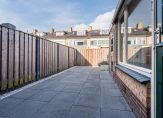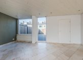 De achtertuin is met moderne tegels afgewerkt, heerlijk beschut en biedt nagenoeg de gehele dag volop zon. In dit geval staat de uitbouw aan de goede kant van de zon, waardoor ook in de woning (zitkamer en keuken) veel licht en zon naar binnentreedt.