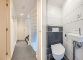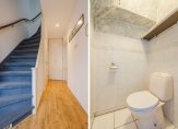 Entree/hal, trapopgang, trapkast, toiletruime, meterkast en toegang tot de woonkamer.