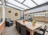 De zij-uitbouw heeft ertoe geleid dat er een ruime living is ontstaan. Hierdoor is er een heerlijk comfortabele leefruimte waar alle functies van koken, studie, hobby en ontspannen in één ruimte kan worden gecombineerd. Door de opbouw op de eerste verdieping en 2 dakkapellen op de tweede verdieping zijn er drie extra slaapkamers gerealiseerd. De grootte van de woning en de aanwezigheid van maar liefst 6 slaapkamers maakt dat de woning uitermate geschikt is voor een opgroeiend gezin, voor wie extra ruimte nodig heeft of voor wie comfortabel wil thuiswerken.