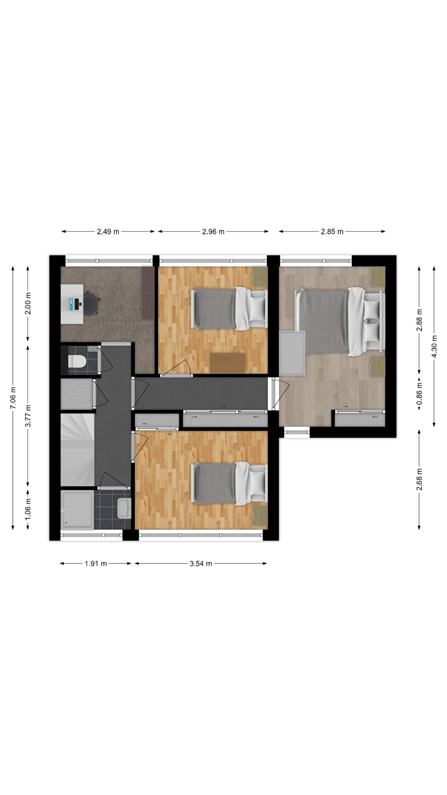 De tweede verdieping is optimaal benut en vergroot met 2 dakkapellen. Dankzij deze uitbreiding zijn er nog twee volwaardige slaapkamers gerealiseerd, wat de verdieping uitermate geschikt maakt voor een groter gezin, thuiswerken of logeerkamers. Verder bevindt zich op de overloop de opstelplaats voor de cv-ketel.