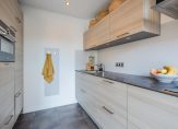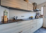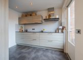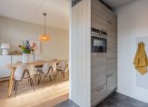 Entree, hal/tochtportaal met meterkast. Vanuit de hal komt u in de Z-vorm living met mogelijkheden voor diverse zithoeken. Aan de voorzijde is een gezellige en zonnige zithoek met uitzicht over de straat, terwijl aan de tuinzijde het eetgedeelte wordt gecombineerd met de half open keuken. Deze is aan 2 zijden opgesteld en voorzien van combi oven, vaatwasser, inductie kookplaat, afzuigkap, koelkast en vriezer.