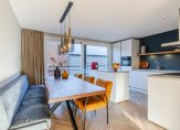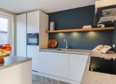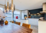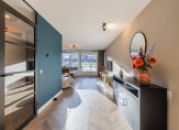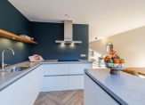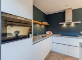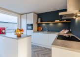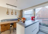 Aan de voorzijde is de vernieuwde keuken (2020) gesitueerd voorzien van een 4-pits inductie kookplaat (AEG), afzuigkap, vaatwasser (AEG), koelkast, vriezer, combi oven/magnetron en met extra verschuifbaar keukenblok. Vanuit de keuken is er een schuifpui naar Frans balkon met vernieuwde hekwerk.