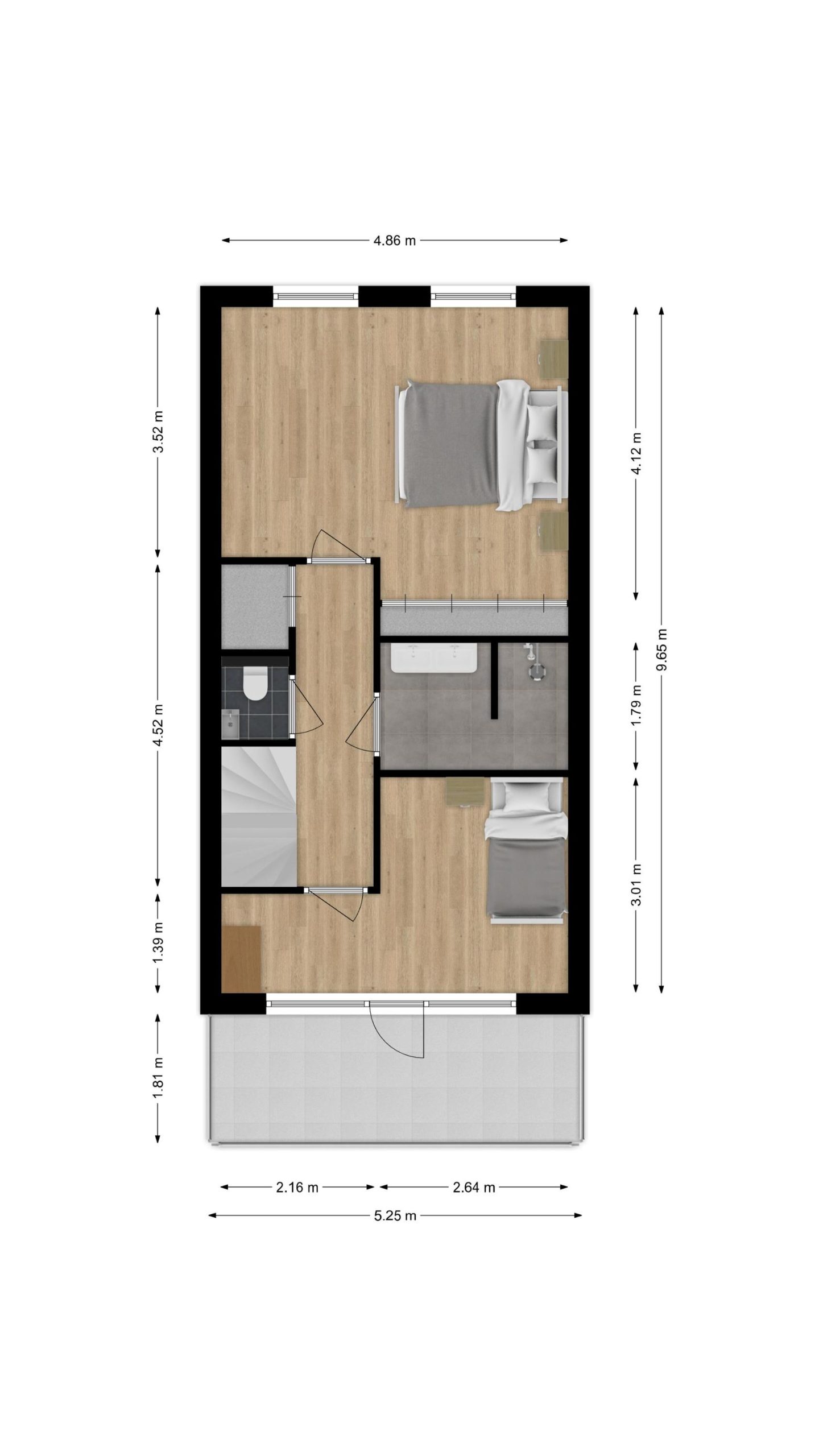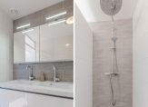 Overloop met separaat 2e toilet, bergkast en trapopgang naar de 3e verdieping. De 2 slaapkamers aan de achterzijde zijn samengevoegd tot 1 riante ouderslaapkamer en aan de voorzijde is een royale slaapkamer over de gehele breedte met deur naar het balkon. De ruime en vernieuwde badkamer is modern ingericht met inloopdouche, dubbele wastafelmeubel en designradiator.