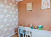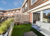 Aan de achterzijde van de woning bevindt zich het woongedeelte met schuifpui naar het zonnige (zuid) terras en vrij zicht op het kindvriendelijke park. Vanaf het terras heeft u via een trap toegang tot dit park waar de kinderen vrij kunnen spelen.