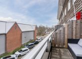 Overloop met separaat 2e toilet, washok met aansluiting wasapparatuur en trapopgang naar de 3e verdieping. Aan de achterzijde zijn 2 ruime slaapkamers, beiden met rolluiken. Aan de voorzijde is een royale slaapkamer over de gehele breedte met een deur naar het balkon. De tussengelegen badkamer is geheel betegeld en ingericht meteen inloopdouche, wastafelmeubel en handdoekradiator.
