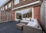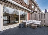Aan de achterzijde van de woning bevindt zich het woongedeelte met schuifpui naar het zonnige terras en vrij zicht op het kindvriendelijke park. Vanaf het terras heeft u via een trap toegang tot dit park waar de kinderen vrij kunnen spelen.