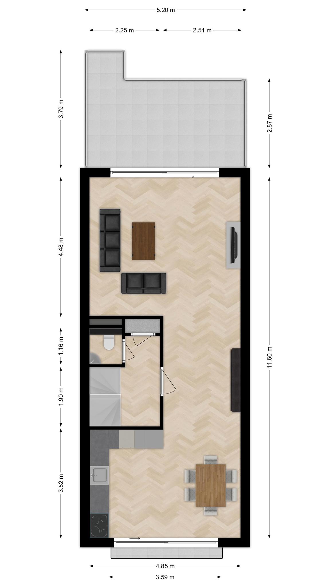 • Woonkamer voorzien van comfortabele vloerverwarming: