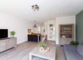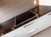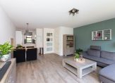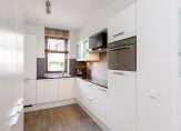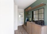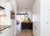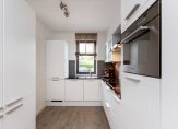 Aan de voorzijde van de woning vindt u de moderne, praktische keuken. Deze is uitgerust met alle gewenste inbouwapparatuur zoals koelkast, vriezer, vaatwasser, inductie kookplaat, afzuigkap en combi oven-magnetron en biedt veel bergruimte. Hier kookt u met plezier.