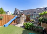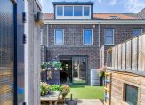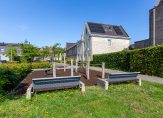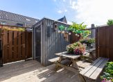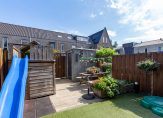 De achtertuin is een fijne plek om te zitten, te spelen of te genieten van het groen. Er is volop ruimte voor zowel zon als schaduw. De houten fietsenberging en de achterom maken het geheel compleet. Tevens bevindt zich in de achtertuin een houten speelhuisje (met berging) voor de kinderen.