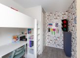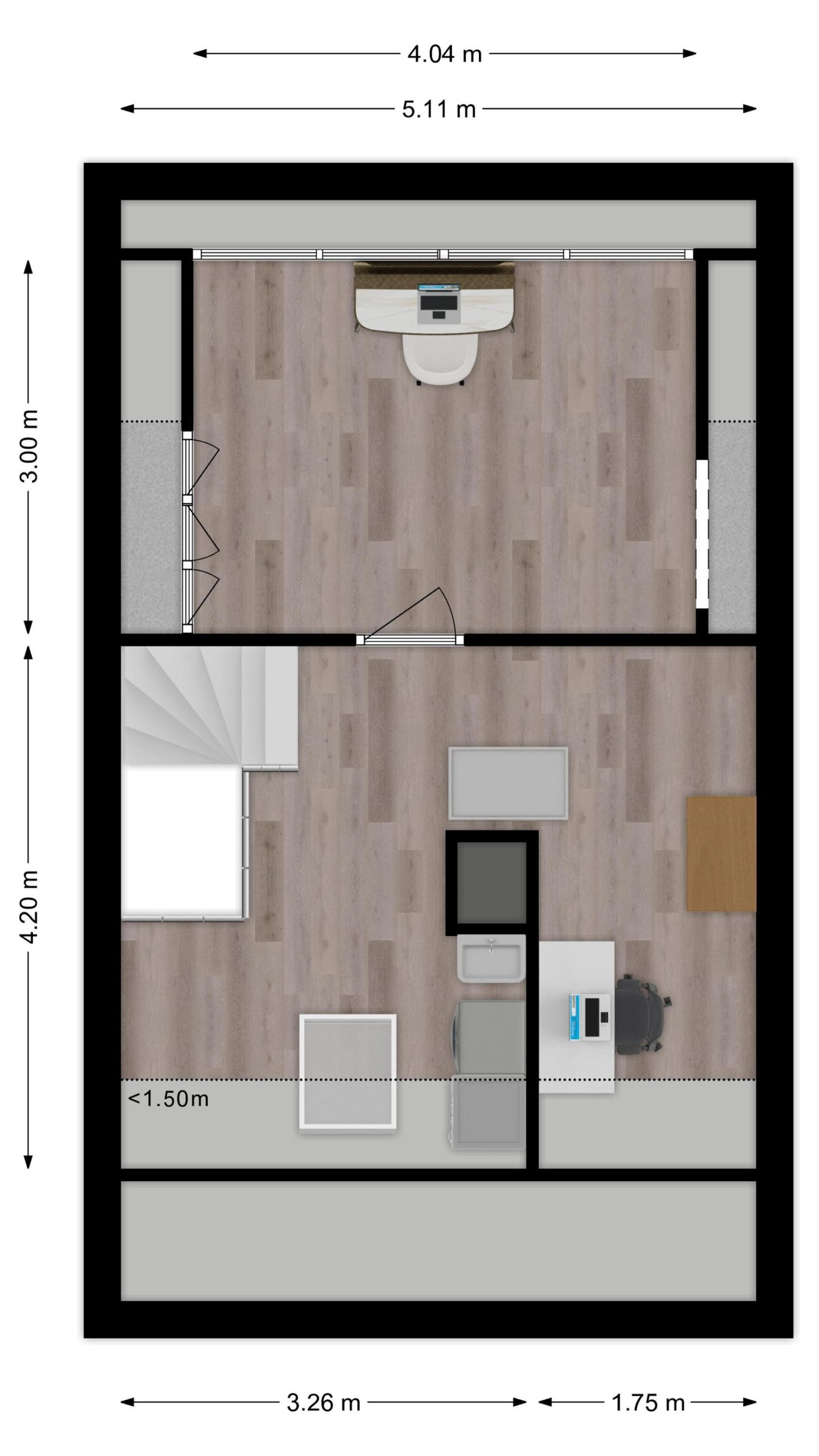 Dankzij de ruime opzet is hier ook plek voor een praktische werk- of studiehoek. Via een luik is de bevloerde bergvliering bereikbaar.