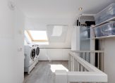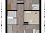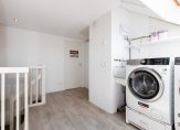 De vaste trap brengt u naar de tweede verdieping: een verrassend ruime en lichte etage. Op de voorzolder vindt u de warmtepomp, de energiezuinige ventilatiebox en de aansluitingen voor de wasmachine en droger.