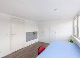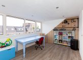 Aan de achterzijde bevindt zich een grote vierde slaapkamer met brede kunststof dakkapel. Achter de knieschotten is extra bergruimte.