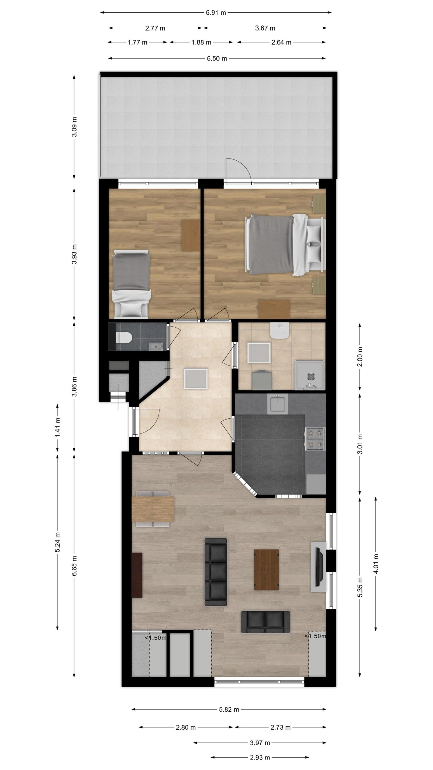 Het appartement maakt een verzorgde indruk en is goed onderhouden. De woning is voorzien van een lichte en ruime woonkamer, een ruime en complete keuken met ingebouwde apparatuur, praktische badkamer met aansluiting wasapparatuur, een in 2011 gemoderniseerd toilet, 2 ruime slaapkamers, nieuwe cv-ketel (2025) en meterkast (2023), én een heerlijk ruim en recent opgeknapt, sfeervol en vrijgelegen dakterras van ca. 21 m2.