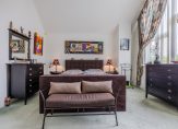 De bijzondere kapconstructie met hoge plafonds laat zich met name in de slaapkamers goed tot zijn recht komen.