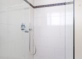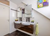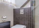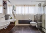 Tussen de slaapkamers is de moderne en luxe badkamer geplaatst. De badkamer is compleet uitgerust met o.a. ruime inloopdouche, wastafelmeubel met dubbele wastfafel en 2 onder- en bovenkasten, 2e toilet, radiator en comfortabele vloerverwarming.