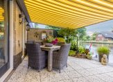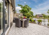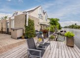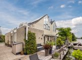 De in de achtergevel geplaatste schuifpui biedt een natuurlijke overgang van binnen naar buiten. U geniet op het terras aan de waterzijde van de prachtige en zonnige plek direct aan de oever van de Oude Rijn, met uw eigen boot aan de steiger. Het zonnescherm heeft zon- en windsensoren. Op de begane grond treft u een royale zonnige tuingerichte living, een complete keuken en doorgang naar verlengde garage met bijkeuken, terwijl op de verdieping een moderne badkamer en 3 slaapkamers tot uw beschikking staan.