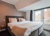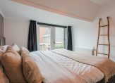 De overloop geeft toegang tot drie ruime slaapkamers en de badkamer. De slaapkamer aan de voorzijde beschikt over een elektrische screen en twee vaste kasten, waarvan één met de opstelplaats van de cv-ketel (Intergas hre, 2021). Aan de achterzijde bevindt zich de royale hoofdslaapkamer met openslaande deuren naar het dakterras. De derde slaapkamer beschikt eveneens over een deur naar het dakterras en een dakkapel.