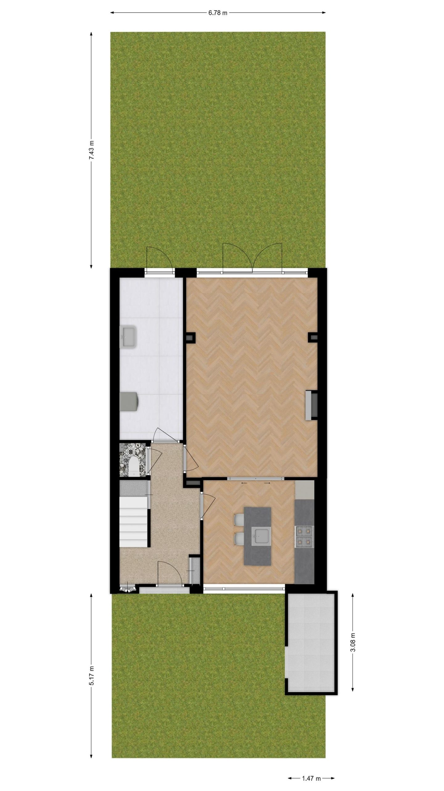 – Praktische bijkeuken/berging (ca. 10 m²);