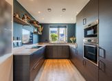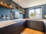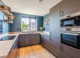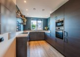 Verder is gekozen voor een bovengemiddeld luxe en moderne afwerking. Denk hierbij aan: een luxe modern toilet, uitgebreide keuken met inbouwapparatuur, extra grote badkamer, separate tweede toiletruimte op de verdieping, in totaal vier slaapkamers, extra dakramen op de tweede verdieping, een bergvliering met vlizotrap en diverse praktische uitbreidingen in elektra en bekabeling c.q. verlichting (sensor gestuurd).