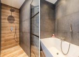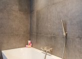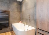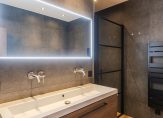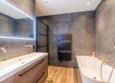 De badkamer is extra ruim doordat is gekozen voor twee slaapkamers op deze verdieping. Deze is voorzien van een ligbad, inloopdouche, dubbel wastafelmeubel en handdoekradiator — een zeer complete en luxe badkamer.