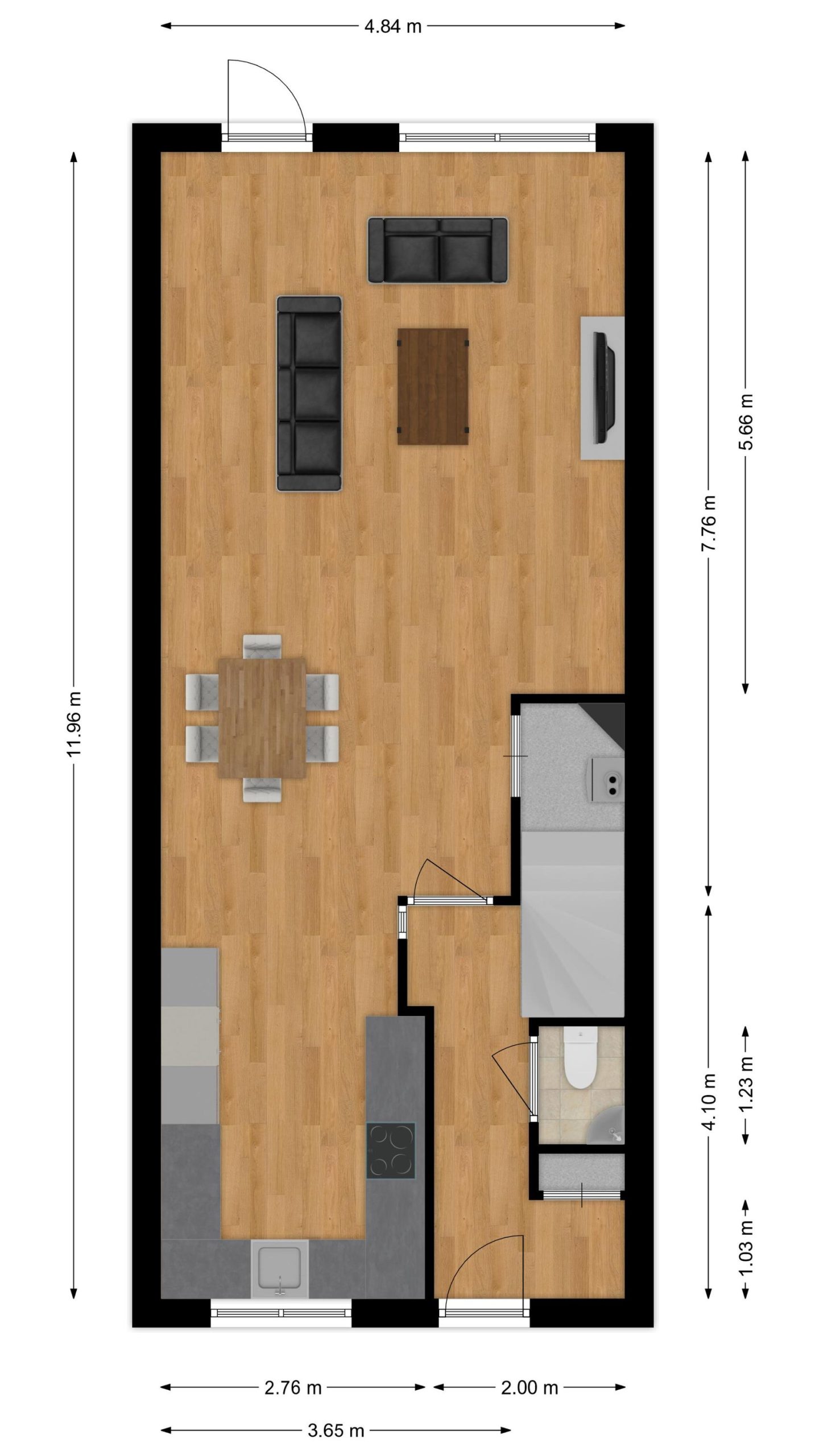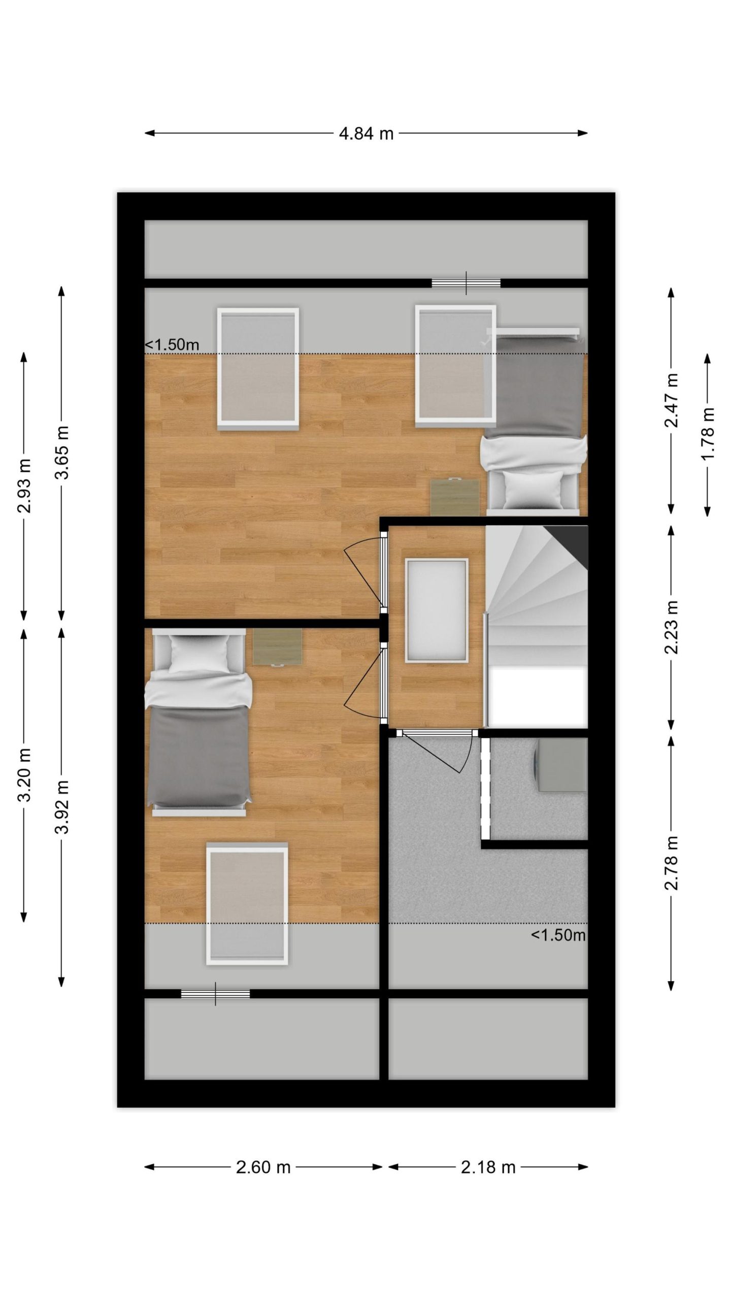 Slaapkamer 4 : ca. 1,78 / 2,93 m x 4,84 / 2,60 m