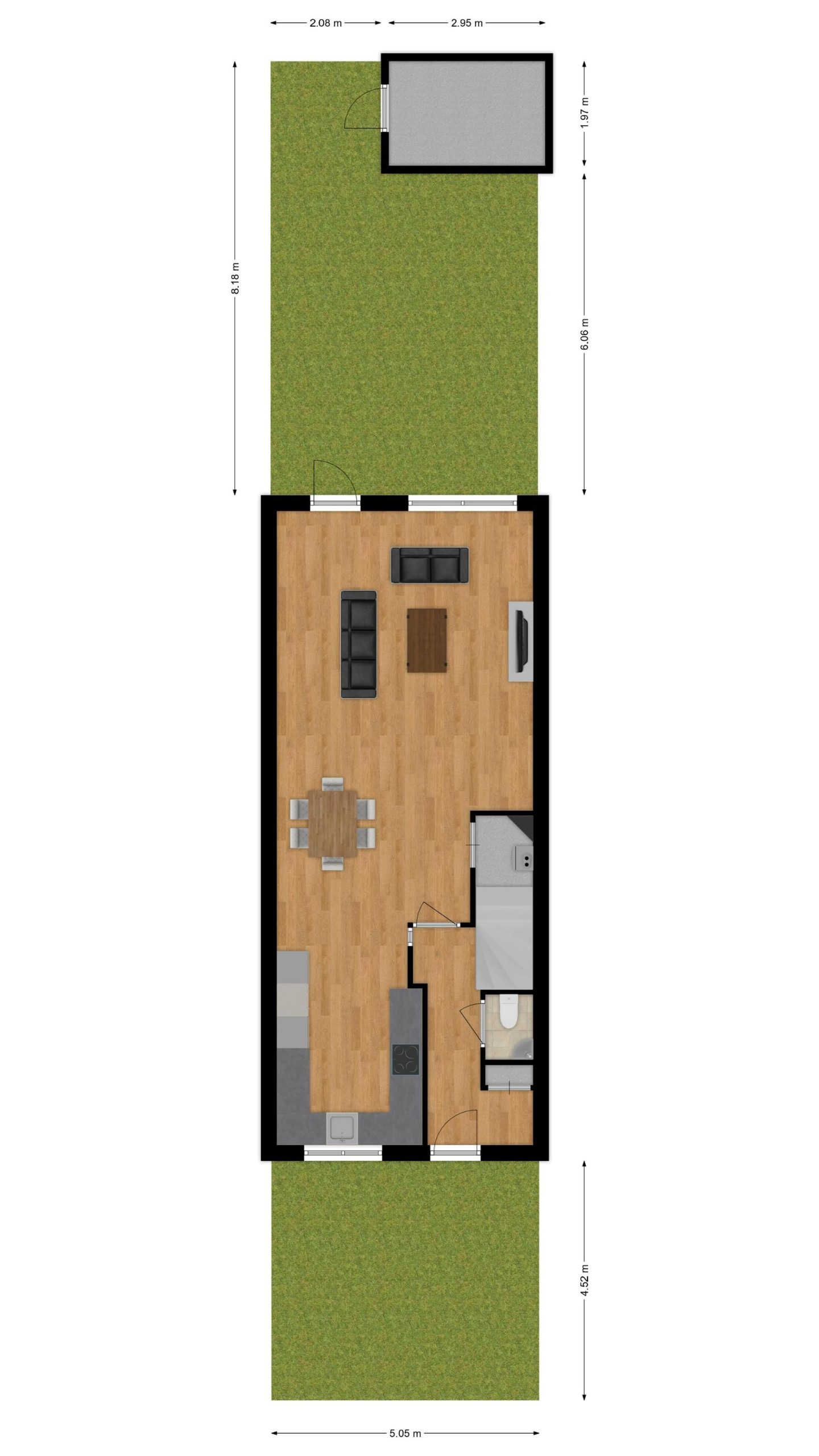 Berging : ca. 2,95 m x 1,97 m