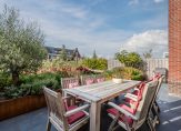 Het zitgedeelte aan de achterzijde is heerlijk ruim en licht vanwege de openslaande deuren en westligging.