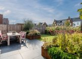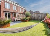 Via de openslaande deuren in de woonkamer of via de garagedeur wordt de achtertuin bereikt met buitenkraan, verlichting en elektrische zonnescherm. De woning heeft een unieke ligging met een achtertuin die volop zon te bieden heeft door de ligging op het westen. De achtertuin is aan het water gelegen en biedt u naast vele aangename zonuurtjes ook veel privacy, aan de overkant is namelijk een groenstrook. Hierdoor is er een heerlijke vrije ligging en dus geen inkijk van directe achterburen.