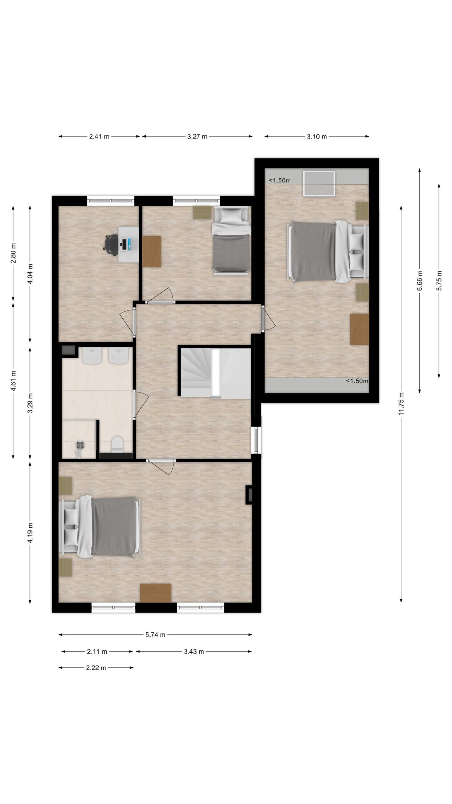 Via de vaste trap in de hal is de ruime en lichte overloop met zijgevelraam te bereiken. Vanaf de overloop is er toegang tot 4 slaapkamers en de badkamer. Aan de achterzijde zijn 2 slaapkamers en aan de voorzijde is de ruime woningbrede (hoofd)slaapkamer. De slaapkamer boven de garage is voorzien van vloerverwarming en dakraam aan achterzijde. De tussengelegen badkamer is compleet en luxe afgewerkt met verlaagd plafond met lichtspotjes, inloopdouche met regendouche, wandcloset, dubbele wastafelmeubel en fraaie design spiegel met touch dimmer en spiegelverwarming.