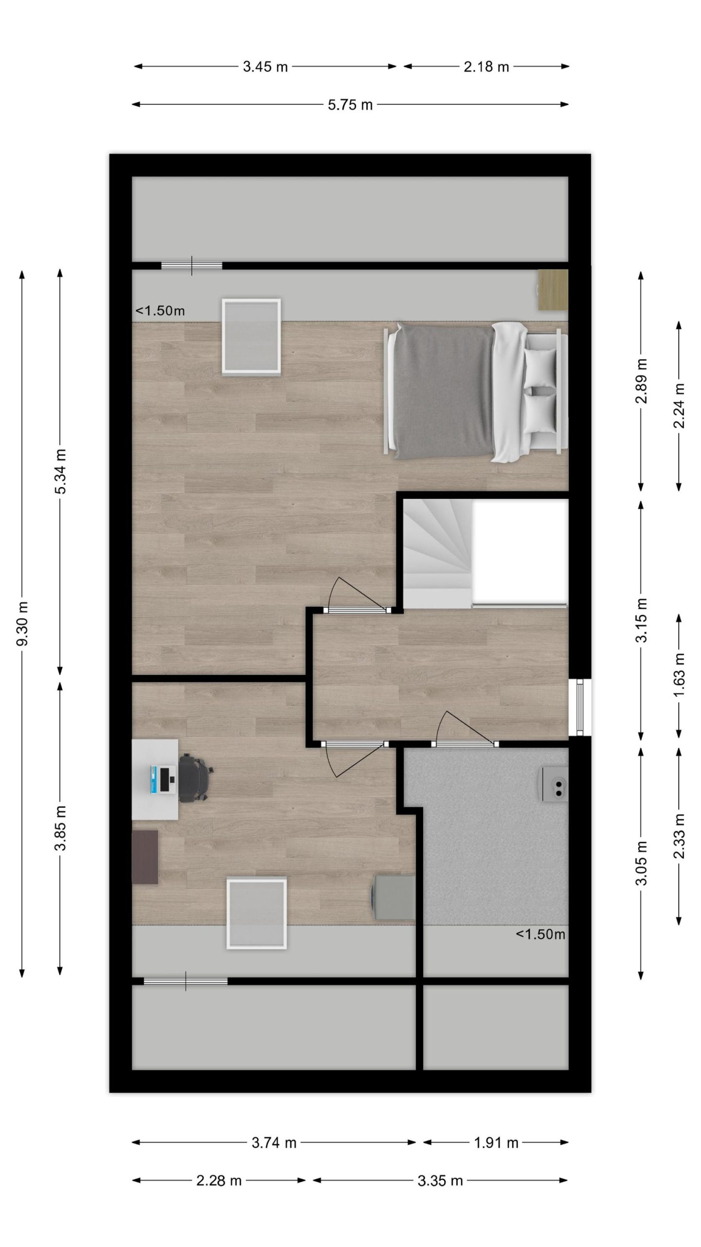 Via de vaste trap heeft u toegang tot de zolderverdieping die tevens voorzien is van een ruime en lichte overloop met zijgevelraam. De afgesloten techniekruimte is voorzien van opstelplaats warmtepomp en WTW-ventilatiesysteem. Verder is deze verdieping afgewerkt met 2 slaapkamers waarvan één kamer is voorzien van wasmachine aansluiting.